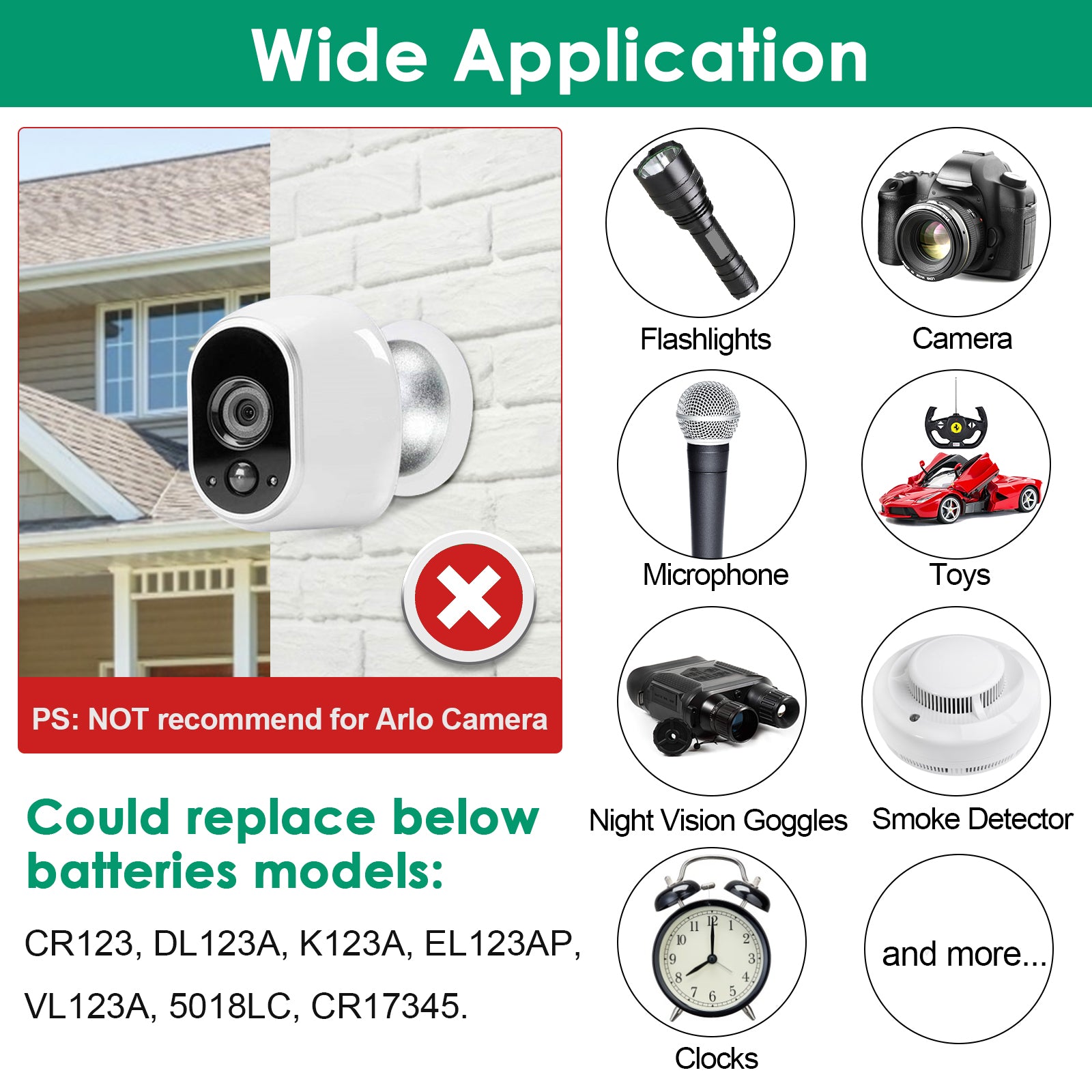 Please NOTE this battery CAN'T be recharged and NOT recommend for Arlo security camera!